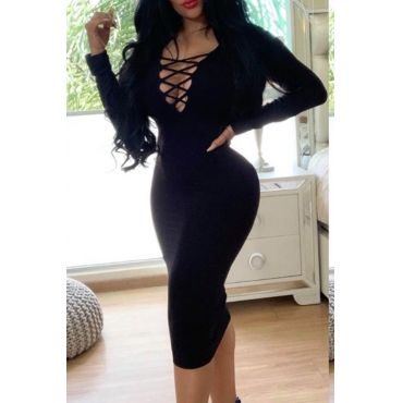 Lovely Trendy Hollow-out Black Knee Length Dress