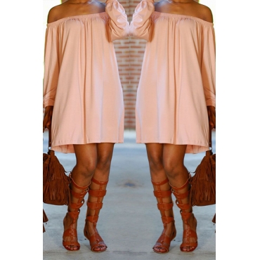 Lovely Casual Dew Shoulder Pink Mini Dress