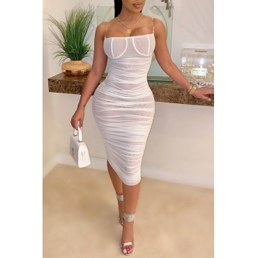 Lovely Sexy Spaghetti Straps See-through White Knee Length Dress