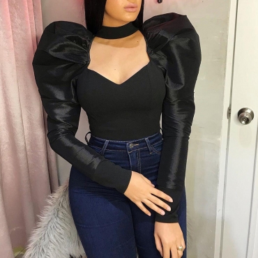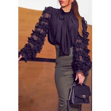Lovely Casual Flounce Design Black Blouse