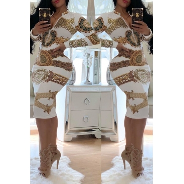 Lovely Trendy Printed Skinny White Knee Length Dress