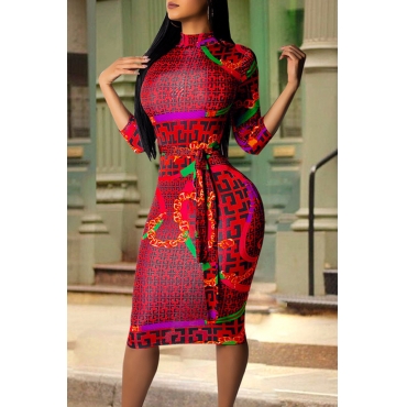 Lovely Casual Printed Skinny Red Knee Length Dress