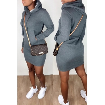 Lovely Casual Hooded Collar Grey Mini Dress