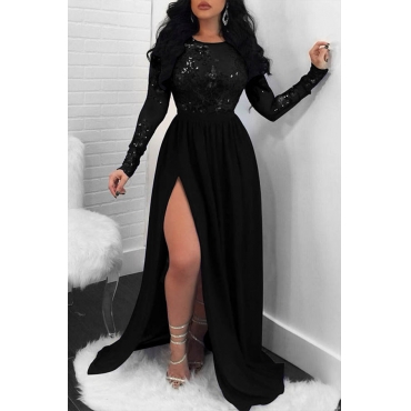 Lovely Sweet Asymmetrical Patchwork Black Ankle Length Dress
