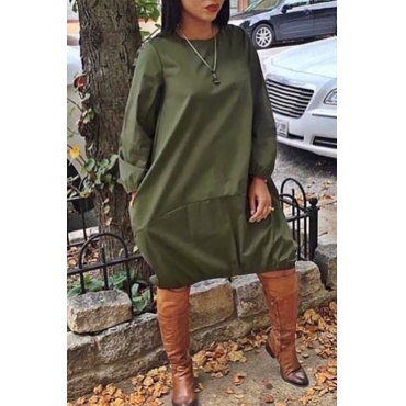 Lovely Euramerican Long Sleeves Loose Army Green Knee Length Dress