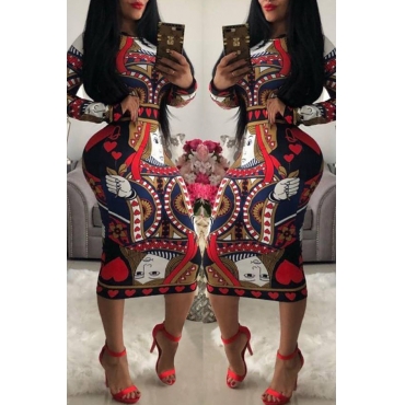 Lovely Trendy Poker Printed Red Knee Length Dress