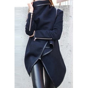 Lovely Casual Long Sleeves Irregular Dark Blue Coat