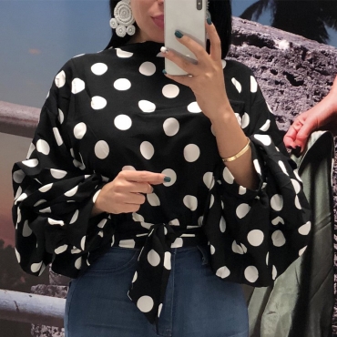 Lovely Trendy Dots Printed Black Blouses