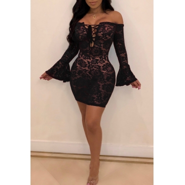 Lovely Sexy See-through Black Lace Mini Dress