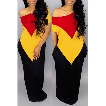 Lovely Casual Patchwork Yellow Floor Length Dress(With Elastic)