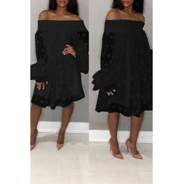 Lovely Stylish Off The Shoulder Horn Sleeve Black Knee Length Dress