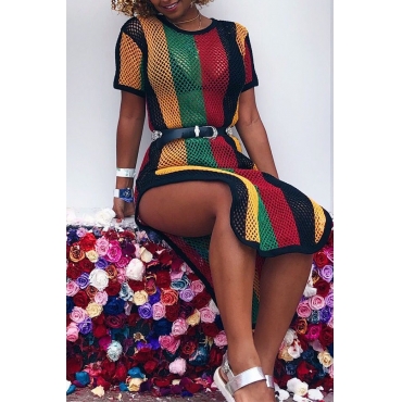 Lovely Casual Side High Slit Multicolor Mid Calf Dress
