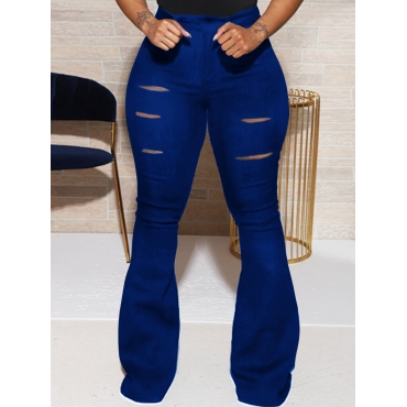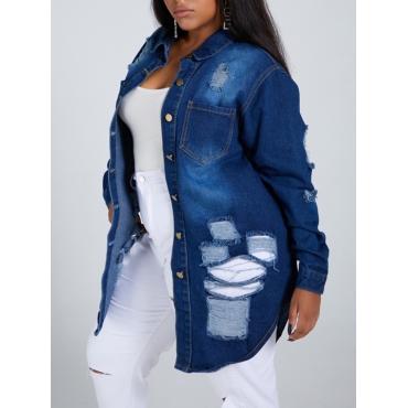 Lovely Street Turndown Collar Broken Holes Deep Blue Plus Size Denim Jacket