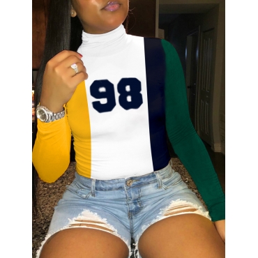 Lovely Street Turtleneck Letter Patchwork White Plus Size T-shirt