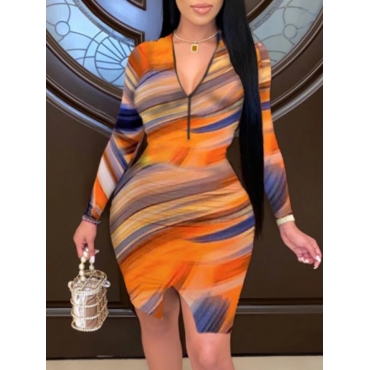 Lovely Trendy Print Multicolor Knee Length Plus Size Dress