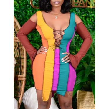 Lovely Casual Color-lump Patchwork Lace-up Hollow-out Orange Knee Length Dress