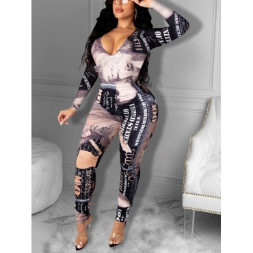 Lovely Trendy Print See-through Black One-piece Jumpsuit