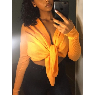 Lovely Street Long Sleeve Knot Yellow Sweater