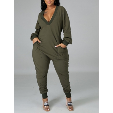Lovely Casual V Neck Pocket Design Green Plus Size One-piece Jumpsuit