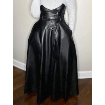 Lovely Formal Belt Design Loose Black Floor Length A Line Skirt