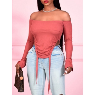 Lovely Street Off The Shoulder Asymmetrical Pink T-shirt