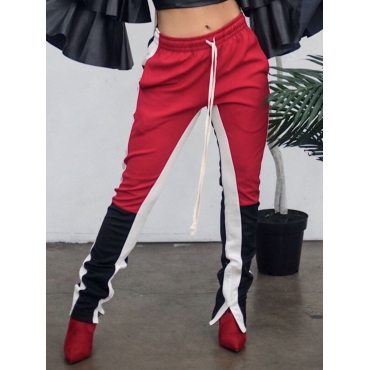 Lovely Street Striped Patchwork Drawstring Red Pants
