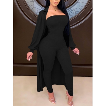 Lovely Casual Bateau Neck Basic Skinny Black Two Piece Pants Set