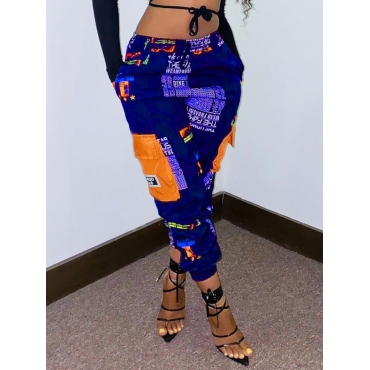 Lovely Street Pocket Patched Letter Print Deep Blue Pants
