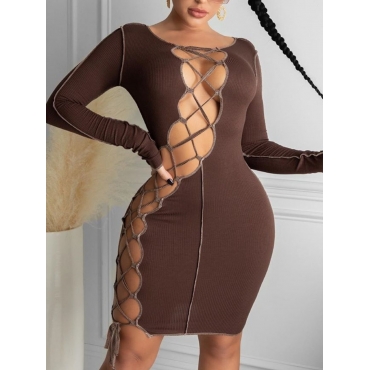 Lovely Sexy Deep V Neck Lace-up Hollow-out Brown Knee Length Dress