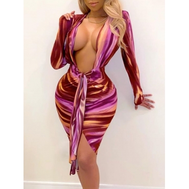 Lovely Sexy Deep V Neck Knot Design Wine Red Knee Length Dress