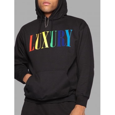 Lovely Leisure Hooded Collar Letter Print Black Men Hoodie