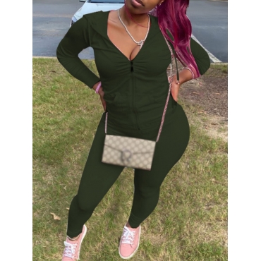 Lovely Casual Hooded Collar Kangaroo Pocket Army Green Two Piece Pants Set