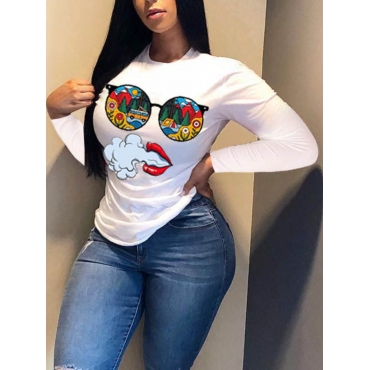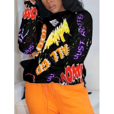 Lovely Casual O Neck Print Black Two Piece Pants Set