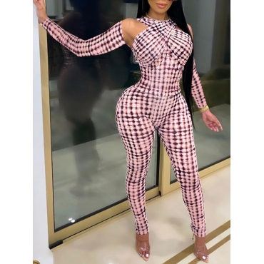 Lovely Sexy Print Hollow-out Pink One-piece Jumpsuit