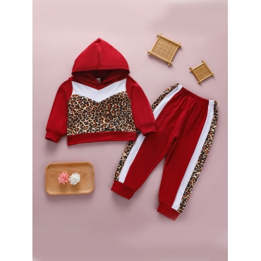 Lovely Sportswear Hooded Collar Leopard Print Patchwork Red Girl Two-piece Pants Set