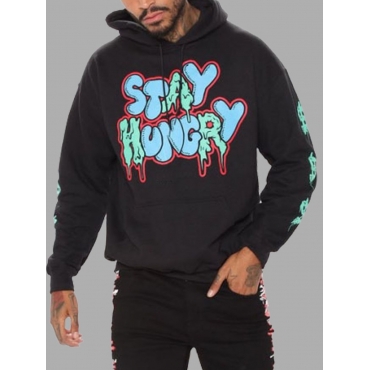 Lovely Casual Hooded Collar Letter Print Black Men Hoodie