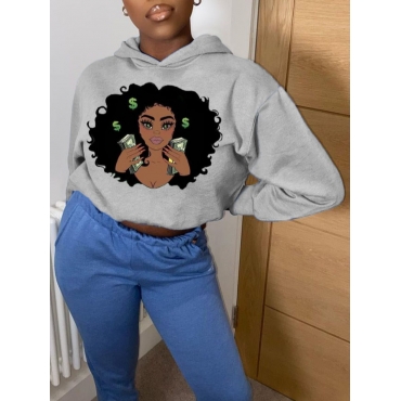 Lovely Casual Hooded Collar Print Grey Hoodie