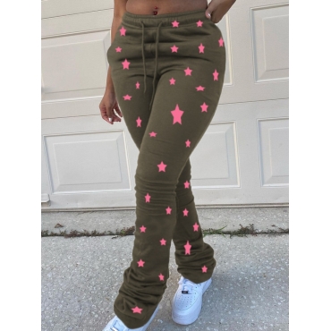 Lovely Casual Elastic Waist Star Print Pink Pants