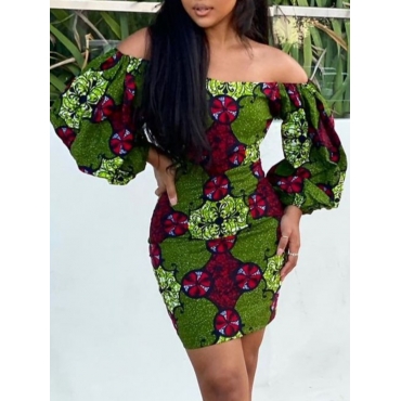 Lovely Bohemian Off The Shoulder Print Green Mini Dress