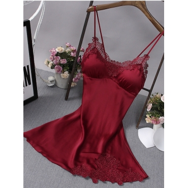 Lovely Sexy Spaghetti Strap Lace Patchwork Wine Red Sleepwear