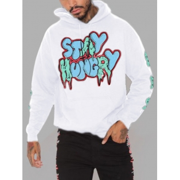 Lovely Casual Hooded Collar Letter Print White Men Hoodie