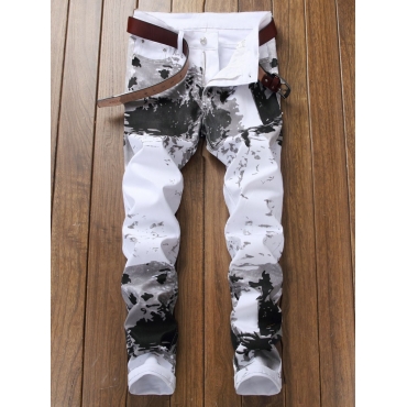 Lovely Casual Mid Waist Tie-dye White Men Jeans