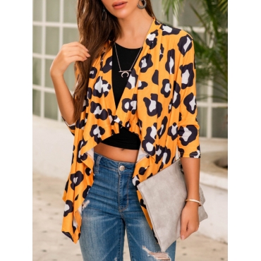 Lovely Trendy Leopard Print Asymmetrical Yellow Coat