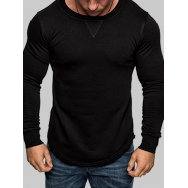 Lovely Casual O Neck Long Sleeve Black Men T-shirt