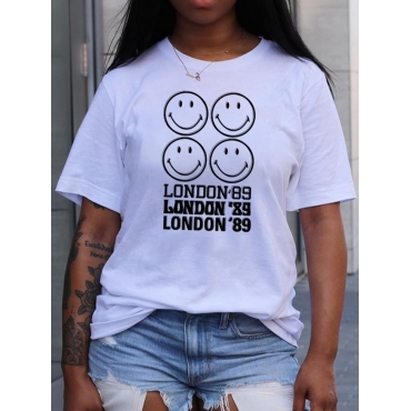 Lovely Sweet Smiley Face Letter Print White T-shirt