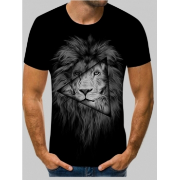 Lovely Casual O Neck Lion Print Black Men T-shirt