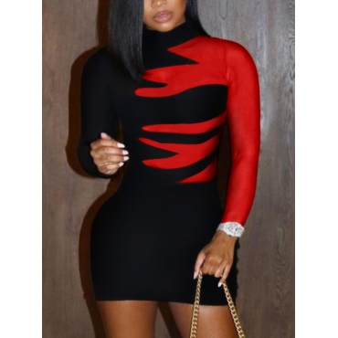 Lovely Sweet Half A Turtleneck Color-lump Patchwork Black Mini Dress