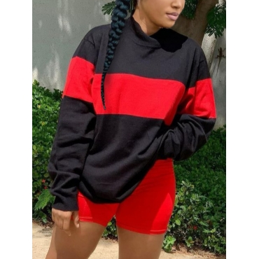 Lovely Trendy Dropped Shoulder Color-lump Loose Red Two Piece Shorts Set