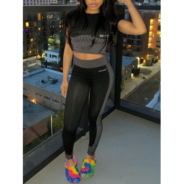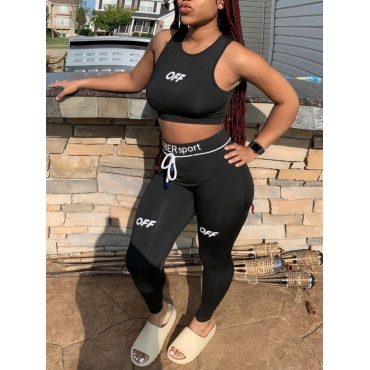 Lovely Sportswear Letter Print Drawstring Black Yoga Two Piece Pants Set