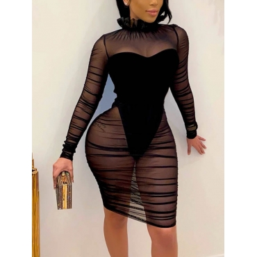 Lovely Sexy See-through Ruffle Design Patchwork Black Knee Length Dress